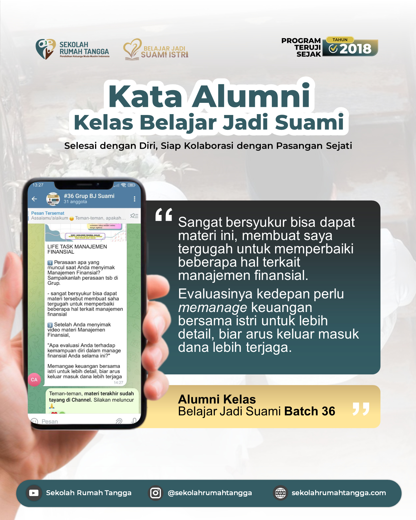 "Anda akan dipandu dan praktik langsung bagaimana mengelola keuangan rumah tangga sebagai tim, buka dua individu yang disatukan keuangannya"