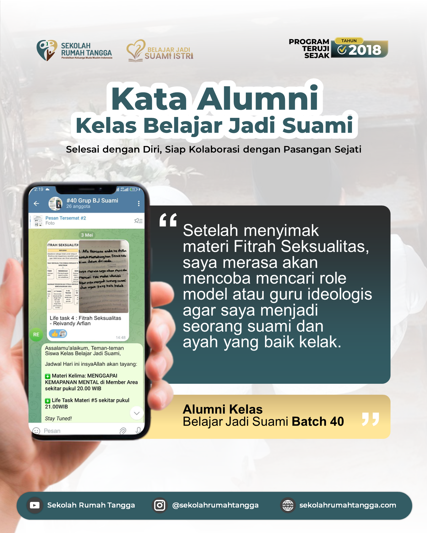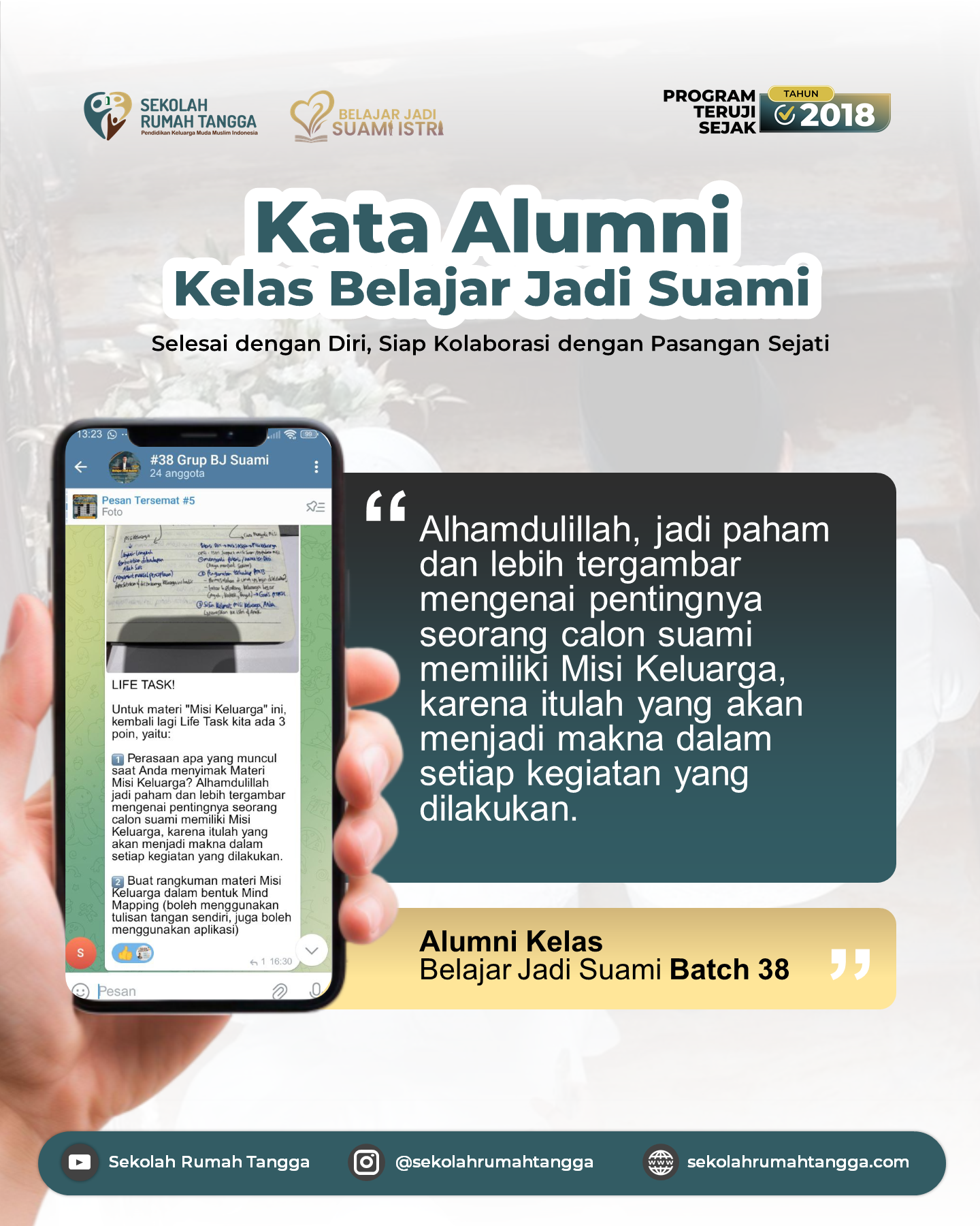 "Anda akan dipandu untuk menemukan maksud dari kehidupan rumah tangga yang selaras maksud penciptaan. Inilah materi puncak dari Transformasi Spiritual"