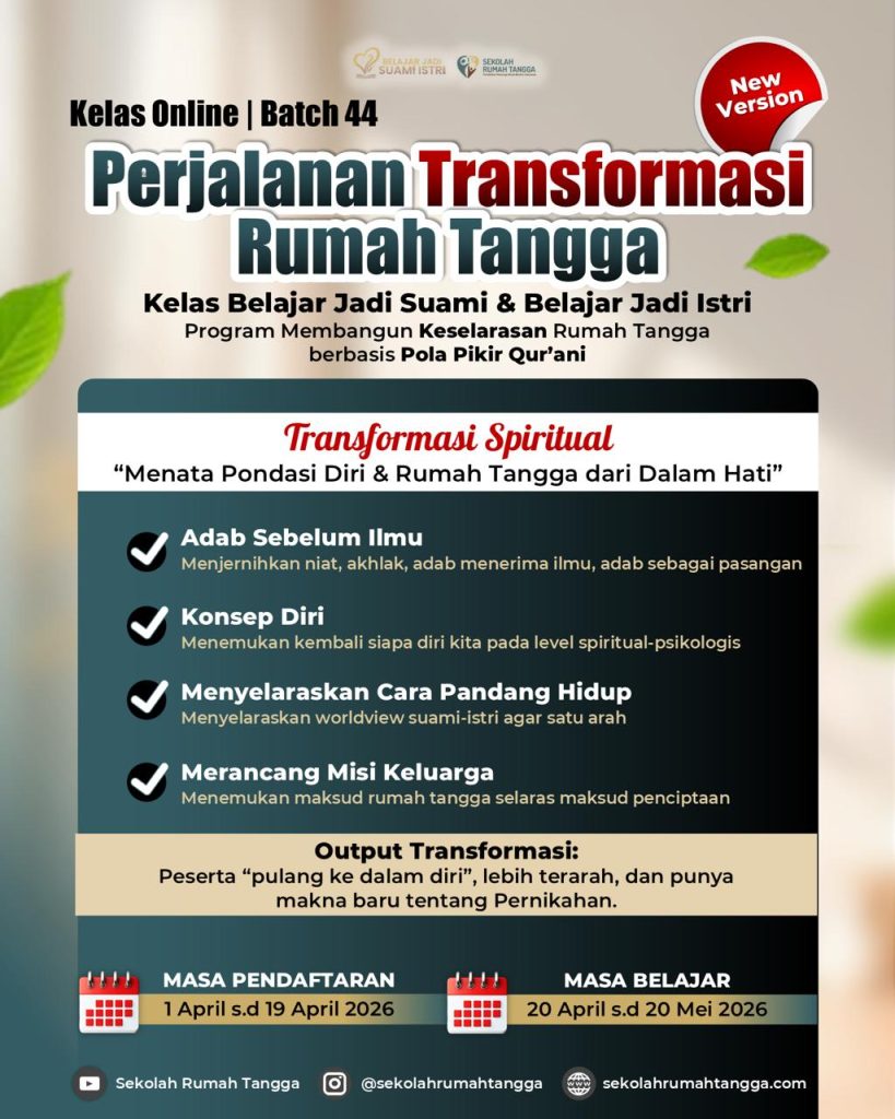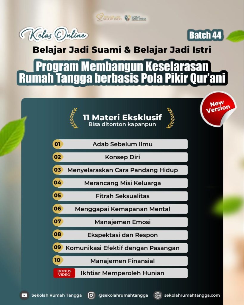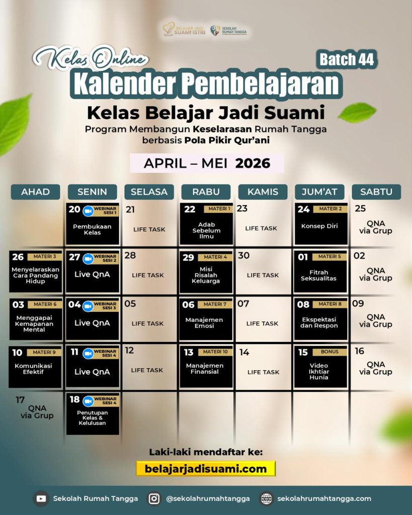 Mulai Tahun 2026, bukan hanya video yang bisa ditonton kapanpun, namun juga akan ada 5X Webinar Live bersama Mentor untuk pendampingan perjalanan transformasi dalam rumah tangga
